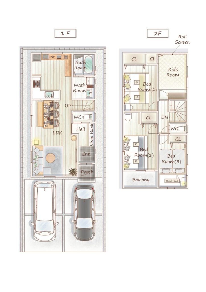 2間臥室+1 間上下舖房(另可加設日式床墊)