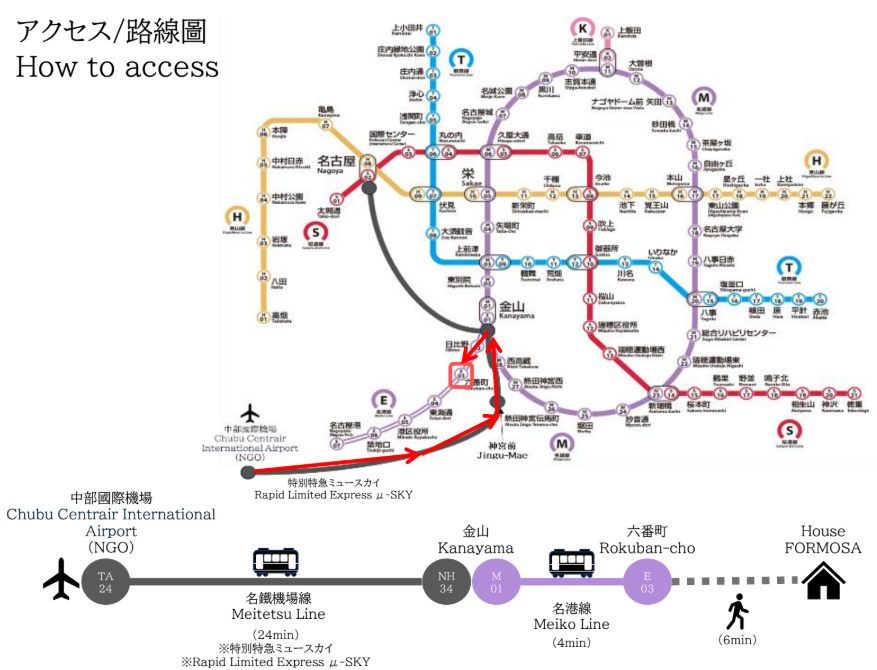 中部國際機場機場 ➡ House FORMOSA 熱田 *搭乘大眾運輸
